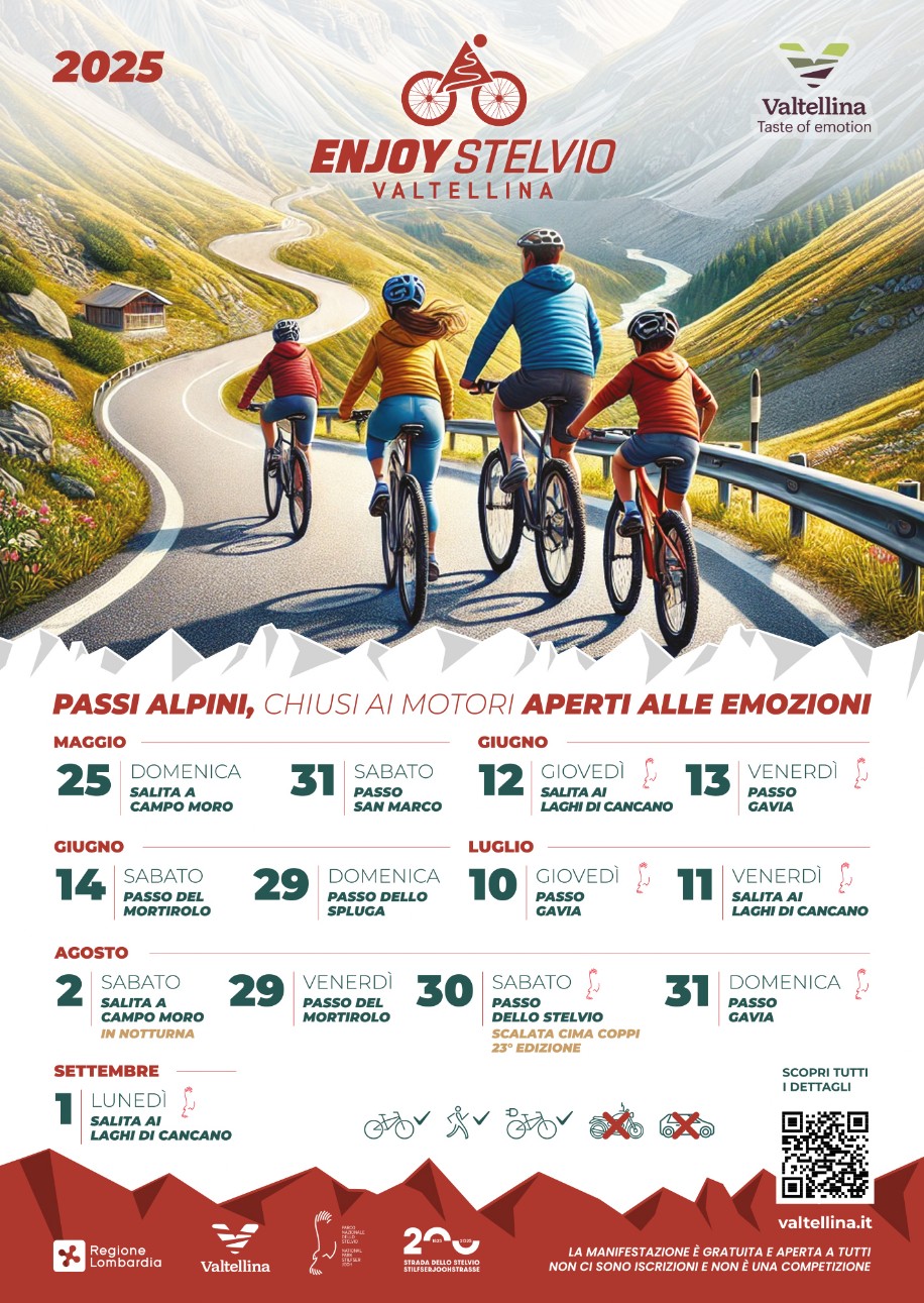 ENJOY STELVIO VALTELLINA 2025: CALENDARIO E ORARI DI CHIUSURA AL TRAFFICO MOTORIZZATO :